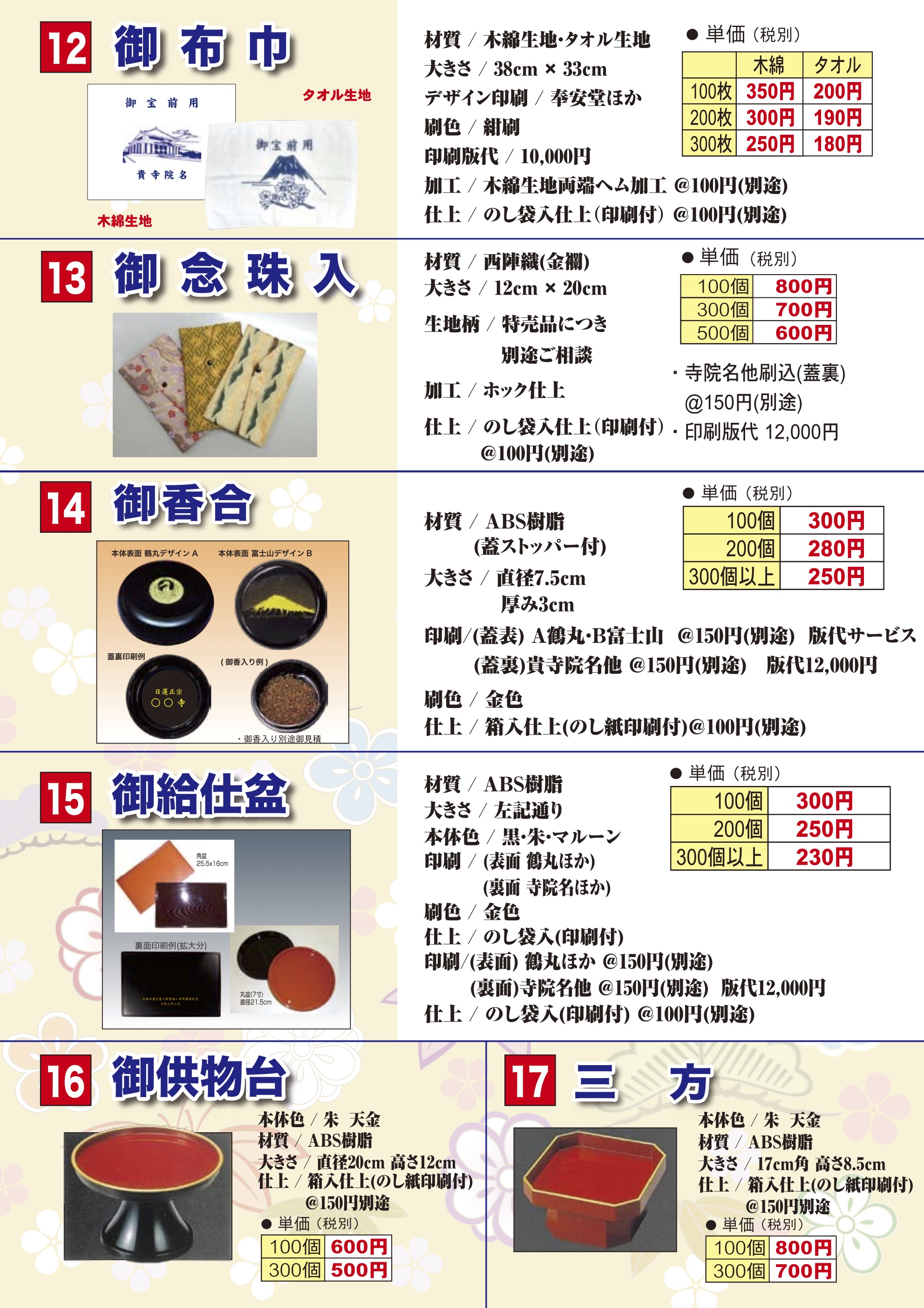 寺院様用御供物品・記念品 各種名入れ・オリジナル商品を取り揃えています。